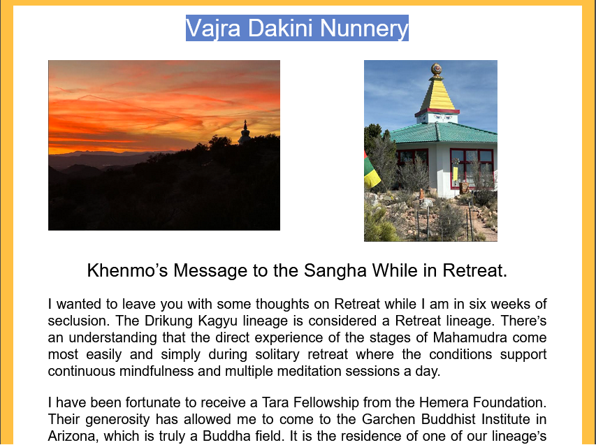 Vajra Dakini operates soley by donation. Your generosity sustains the lives and works of the nuns of Vajra Dakini Nunnery, our administrative assistant Anna, and our annual donation to Drikung Kagyu Samtenling Nunnery.