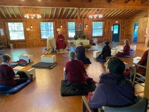 His Holiness Drikung Kyabgon Chetsang Rinpochedesigned this course specifically with 21st century Western practitioners in mind as a complete practice path leading to enlightenment. He sees it as the new Ngondro or preliminary practice for all meditators. Learning how to still the mind allows participants at any level to deepen their spiritual understanding and practice. Pilgrim Lodge on the shores of Lake Cobboseecontee provides a beautiful spot for this silent retreat. The classic elements of a Maine summer camp including cabin living and meals in the dining hall, the camp lodge turned into a temple for deep meditation, the calls of the loons around the lake all provide a rich natural setting for Khenmo Drolma’s skillful teaching.